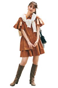 【写真7枚】アンサンブルのワンピースにユニクロのジャケットをON!『めざましテレビ』お天気キャスター・林佑香さんの今日のコーデ【10月24日分】