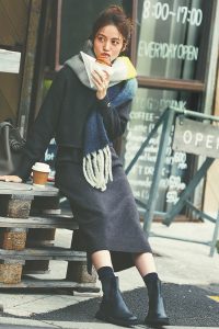 チェック柄のコートと黒のロングブーツで、めざましキャスター・林佑香さんを冬のヒロインに仕上げる♡【12月8日分】