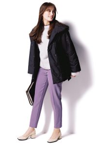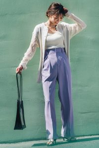 【紫パンツコーデ11選】パープルに合うトップスの色は?|デートや通勤カジュアルを特集