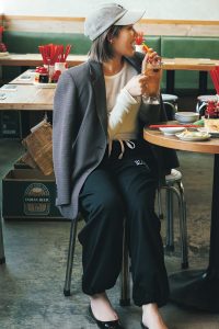 グレーでまとめたおしゃれ上級テク♡めざましお天気キャスター・林佑香さんの毎日コーデ【10月14日分】