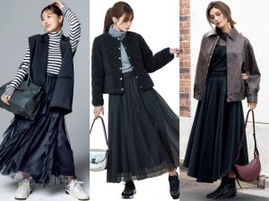 • 【秋冬の黒フレアスカートコーデ13選】レザーやチュールなど、素材で季節感を演出!