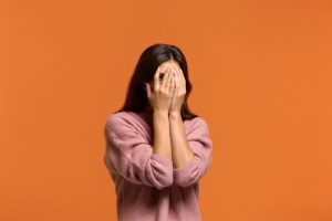 • Its,Fear.,Scared,Beautiful,Woman,In,Pink,Sweater,Peeps,Through