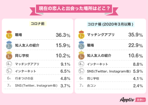 • コロナ禍3年目の恋愛事情。みんなの「出会いの場」1位はココに変化