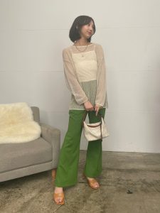 【写真10枚】お天気キャスター・林佑香さんのケーブルニットで柔らかく上品な淡色コーデ【10月23日分】