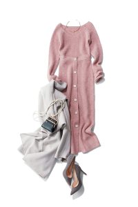 【12/10のコーデ】モテ確白ワンピは♡ カーデセットで時短&着回し最強!