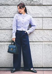 クラシカルな金ボタンカーデを♡短丈×ワイドパンツで旬バランスに【今日のコーデ】