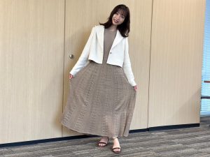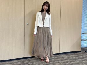 【写真7枚】アンサンブルのワンピースにユニクロのジャケットをON!『めざましテレビ』お天気キャスター・林佑香さんの今日のコーデ【10月24日分】