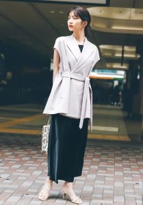 • 色気が香る黒のサテンワンピに♡ケープ風ジレでモードなアクセントを【今日のコーデ】