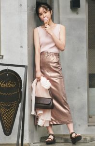 光沢スカートで洗練される♡大人のピンクワントーンコーデ【今日のコーデ】