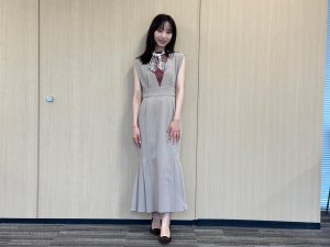 【写真7枚】アンサンブルのワンピースにユニクロのジャケットをON!『めざましテレビ』お天気キャスター・林佑香さんの今日のコーデ【10月24日分】