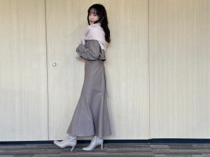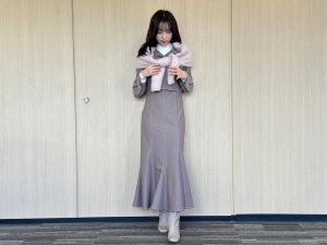 【写真10枚】お天気キャスター・林佑香さんのケーブルニットで柔らかく上品な淡色コーデ【10月23日分】