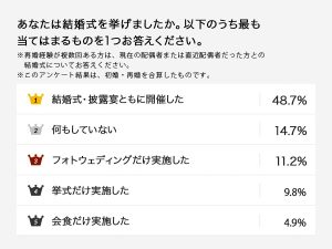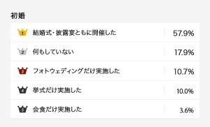• 【調査】実際、結婚式を挙げる人の割合ってどれくらいなの?初婚と再婚でこんなに違った…!