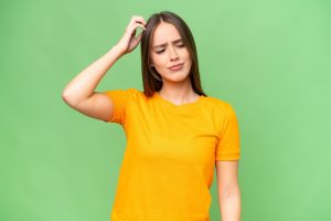 • Young,Pretty,Caucasian,Woman,Over,Isolated,Background,Having,Doubts,While