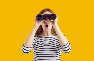 • What,Is,There.,Curious,And,Inquisitive,Woman,Peeking,Through,Binoculars