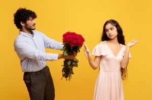 • Unwanted,Confession.,Displeased,Indian,Lady,Rejecting,Her,Admirer,With,Roses
