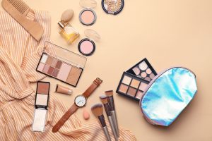 • Makeup,Bag,With,Decorative,Cosmetics,,Clothes,And,Accessories,On,Color
