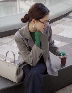 【写真9枚】盛れるグレーニットにプレッピー要素を足してみたら…? 人気お天気キャスター・林佑香さんのコーデ【11月13日分】