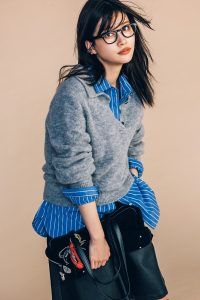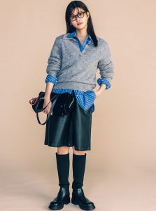 • 【1/29のコーデ】めるるを今すぐマネしたい!定番シャツ×ニットの重ね着テク♡