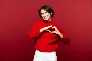 • Portrait,Of,A,Smiling,,Beautiful,Woman,Making,A,Heart,Shape