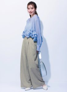 • 【4/14のコーデ】フリルブラウスは、クールな色合わせで洗練見えを叶えて♡