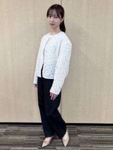 【写真7枚】ホワイトのケーブルニットで好感度高めにまとめて♡『めざましテレビ』お天気キャスター・林佑香さんの今日のコーデ【10月6日分】