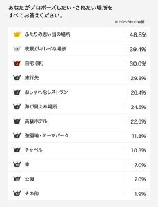 • プロポーズ時に人気のお店や勝負飯は?言葉と一緒にもらえたら嬉しいものも調査