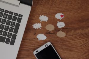 • Speach,Bubbles,Self-made,Of,Paper,On,Woody,Texture