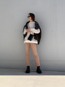 【11/20のコーデ】山下美月が脚ちら♡ トレンドのラガーシャツを秋冬に着るなら?