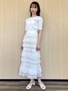 • 【写真3枚】白レーススカートが天使みたい♡『めざましテレビ』お天気キャスター林佑香さんの毎日コーデ【7月15日分】
