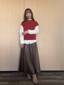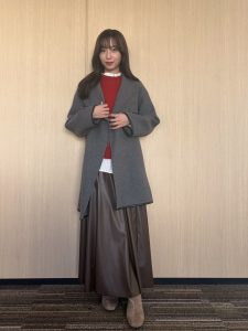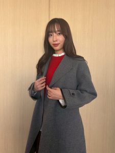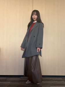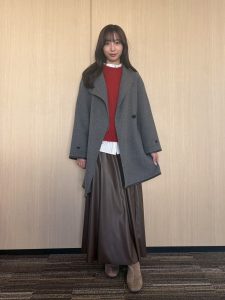 【写真8枚】赤ニット×グレーコートで綺麗めな冬準備♡ めざましお天気キャスター・林佑香さんの毎日コーデ【11月18日分】
