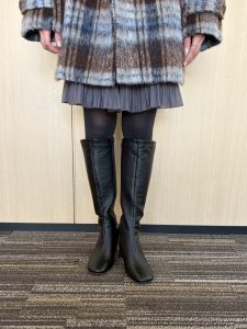• チェック柄のコートと黒のロングブーツで、めざましキャスター・林佑香さんを冬のヒロインに仕上げる♡【12月8日分】