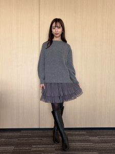 チェック柄のコートと黒のロングブーツで、めざましキャスター・林佑香さんを冬のヒロインに仕上げる♡【12月8日分】