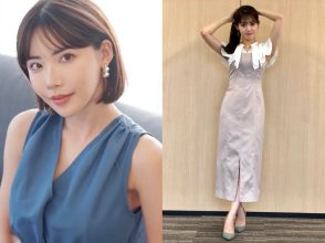 胸元をふっくらと演出しつつ、ボトムのフリルで太もももカムフラージュ。肌なじみのいいくすみパステルも優しげな印象♡
