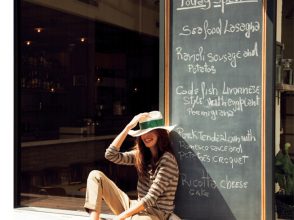 遊び心あるインパクトカラーの靴を足元のポイントに置きたいときは、ソフトな色の服を合わせるのが正解。全身がぼやけないよう、バッグなどの小物でアクセントを。