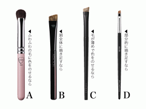 ③Cをブラシに取り、唇全体に塗る。輪郭のリップライナーもブラシで自然にぼかす。