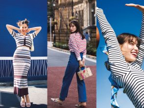 「なんだかんだ言って、女子は王道爽やかなコーディネートがやっぱり好きなもの。カジュアルになりすぎないよう、ピッチ(幅)の細すぎないボーダートップスを選び、きちんと感を出すために紺ジャケットを。王道にはチノパンを合わせてロールアップして、ヌケ感を出してスタイルアップ!」(スタイリスト・川村桃子さん)