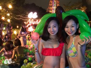 かわいい写真を撮るために来るナイトプール。水着もそれぞれおしゃれ!
