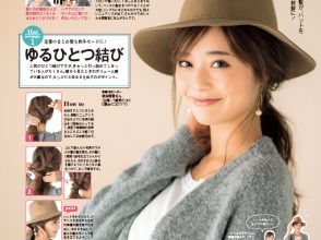 【余談】スタッフがアレンジ中、気がついたことがひとつ。ピンを口にくわえる、髪を上げてうなじを見せる、首を片側にかしげて髪を触る……などなど、ヘアアレンジの仕草には「モテ仕草」が潜んでいる! あえて男性の前でパパッとヘアアレンジして男性を“ドキッ”とさせる、そんなテクもありかな……と思いました。(さとうのりこ)