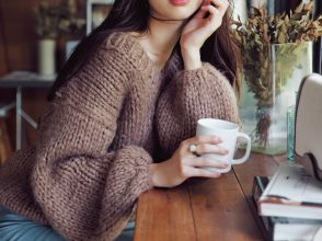 インナーはオフベージュのニットとウォッシュデニムで明るくクリアな配色を意識。素材が重たくなる冬のコーデには、乙女心をくすぐる透明感のある色合わせが効果的です♡