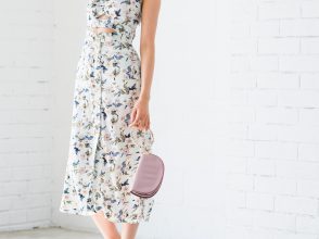 パンツ¥16,000(mimi&roger/ミミ&ロジャー)、ガウン¥12,000(Mila Owen ルミネ新宿店<me couture>)、バッグ¥19,000(ティースクエア<パオラヌッティ>)、靴¥20,000(インター ショシュール<インター ショシュール>)、ピアス¥6,200(Gas Bijoux 青山<Gas Bijoux>)、チョーカー¥2,200(アネモネ/サンポークリエイト)
