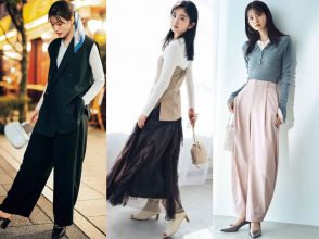 上品なチェック柄なら、少し変わったデザインもおしゃれっぽく着こなせます。ウエストの折り返しがポイントのスカートは、細身のラインとハイウエストで女らしいシルエットもスタイルアップも両立。変形スカートに挑戦するときは、シンプルなトップス選びを心がけて。控えめなデザインなら、色で遊ぶのはアリなんです♪