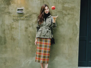 長め丈×チェックが、今年らしさバツグンのタイトスカート。落ち着いたモノトーンはきちんとした印象もあるので、ラフなスエットやショートブーツで脱コンサバを意識して。