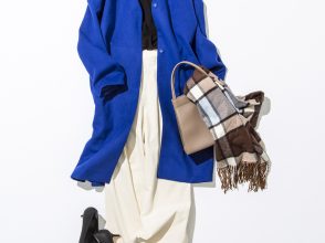 CanCam it girlでもある中村麻美さんがプロデュースしているNEWブランド「CACHEC」。大人っぽいロングガウンコートは、上品かつ高級感のある仕立てで美人見え確実! 着るだけで印象が優しげに見えて、使いやすいベージュの色味もGOODです。