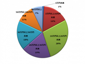 男性のボリュームゾーンはふたつに分かれており、多い人は1万円以上、少なめの人は3,000円~5,000円程度であることがわかります。年齢によっても差がでてきそうですね。