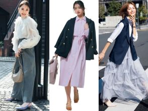 ベーシックなワイドパンツにシアーワンピをスカート感覚でレイヤリングすれば、足元だけを切り取っても高感度な上級者顔に。質感のある白カーデや小物まで好印象な白でまとめるのが着こなしやすさの秘密。