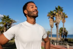 • African,American,Man,Breathing,Deeply,In,Nature.,Black,Man,In