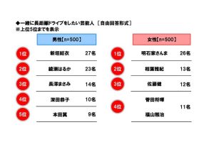 • 【1000人アンケート】一緒にドライブしたい芸能人は?夏のドライブ事情調査!