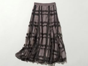 マーブル風のプリントがニュアンシーで女らしいミディ丈スカート♡ スタイルがよく見えるIラインシルエットで、甘すぎないフェミニンコーデが作れます!
