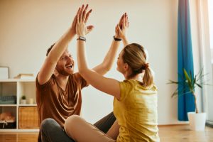 • Happy,Athletic,Man,And,His,Girlfriend,Congratulating,Each,Other,On