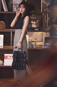• きれいなお姉さんは地味カラーを色っぽく。サスペ付きスカートでこなれ通勤【今日のコーデ】